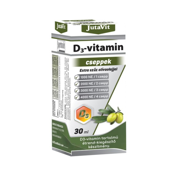 A JutaVit D3-vitamin cseppek a D-vitamint extra szűz olívaolajban oldott formában tartalmazza.